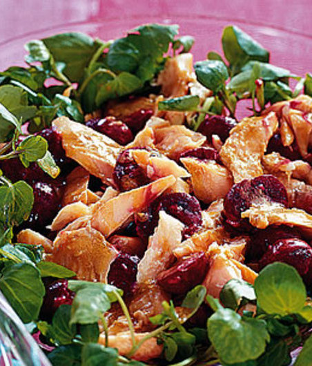 Do čisté sklenice se šroubovacím víčkem dejte velkou špetku soli a pepře, hořčici, olivový olej a ocet. Zavřete, protřepejte a uložte do lednice – tam zálivka vydrží i pár týdnů, dokud ji všechnu nespotřebujete. Případné větší kusy nakládané řepy pokrájejte a vložte do mísy. Přidejte křenovou směs, dvě lžíce připravené zálivky a pořádně promíchejte. Filety ze pstruha rozdělte na drobné kousky, případnou kůži vyhoďte. Řepu smíchejte s řeřichou a navrch naaranžujte pstruha.