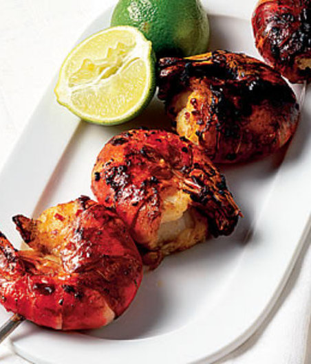 Očištěné garnáty dejte do misky a přidejte k nim smíchané přísady na marinádu. Po pěti minutách garnáty napíchejte na kovové jehlice, položte je do středu grilu na stonky citronové trávy a pečte dvě až tři minuty, aby ztmavly. Otočte a grilujte další dvě až tři minuty.