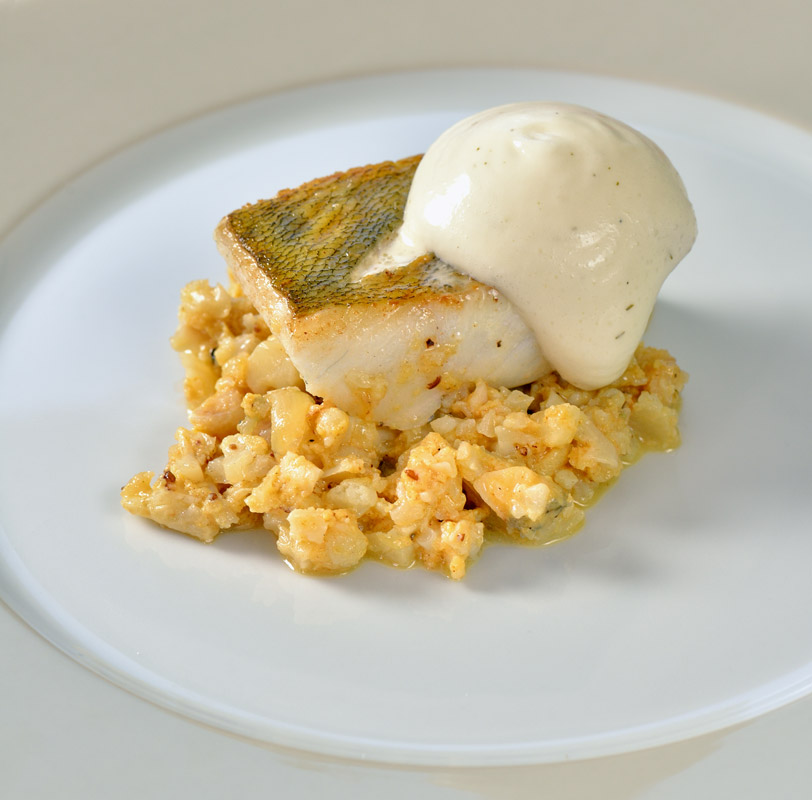 Cibuli nakrájenou na kostičky osmahneme na oleji, přidáme kostičky z odřezků candáta, předvařený a nahrubo nasekaný květák, osmahneme a ochutíme kořením.