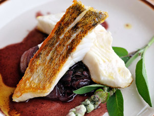 Filety z candáta na straně kůže nařízneme, pokapeme je olejem a necháme chvilku odležet. Mezitím si připravíme cibulové ragú. Všechny druhy cibule nakrájíme na menší kousky a na přepuštěném másle je orestujeme, přidáme med, podlijeme vínem, vložíme šalvěj, osolíme a podusíme, až se víno zredukuje na medovou konzistenci. Na pánvi s pár kapkami oleje candáta opečeme kůží dolů, pak příkon tepla zmírníme a rybu takto pozvolna dopečeme nebo ji obrátíme a dopečeme z druhé strany, osolíme. Porce candáta podáváme s cibulovým ragú.