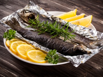 Do vykuchaného pstruha vložíme snítku rozmarýnu, 2 stroužky rozbouchnutého česneku, osolíme ho a opepříme. V míse smícháme olivový olej s octem, nasekaný rozmarýn, dochutíme solí, pepřem a potíráme pstruha při pečení. Podáváme s citronem a pečivem.