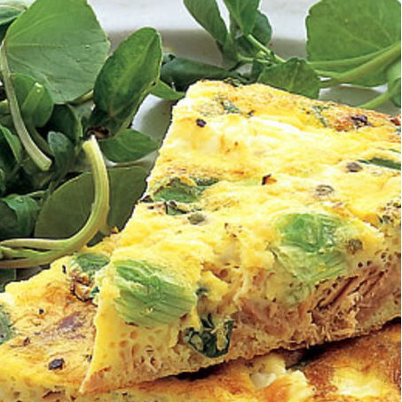 Ve velké míse našlehejte vejce, poté přimíchejte salátové cibulky, nalámanou fetu nebo balkánský sýr a tuňáka. Ochutnejte a případně osolte (sýr bývá dost slaný!) a opepřete. Na teflonové pánvi rozpalte lžíci oleje. Nalijte na ni půlku směsi a nechte pět minut nerušeně opékat na nízkém plameni, dokud nebude téměř hotová. Omeletu pak dejte na tři až čtyři minuty pod rozpálený gril nebo pánev přikryjte poklicí. Stejně upečte zbytek směsi. Podávejte nakrájené na klínky.