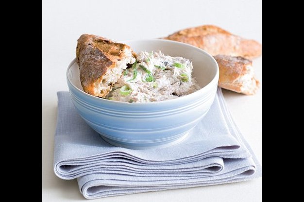 Makrelu osolíme a potřeme olejem. Pečeme v troubě 30 minut na 170 C. Necháme vychladnout a obereme maso, přidáme do creme fraiche . Osolíme, opepříme přidáme petržel, cit. kůru a zakápneme šťávou.