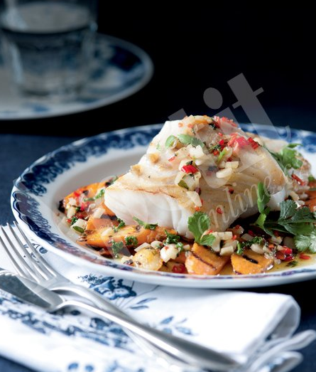- 4 mražené filety (každý cca 175 g) z tresky nebo halibuta, lehce povolené