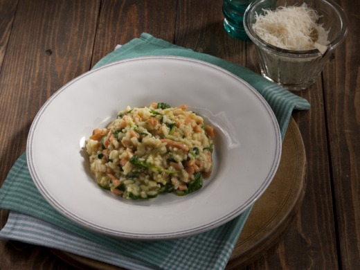 - 225 g uzeného lososa (může být i čerstvý, předem připravený na pánvi)