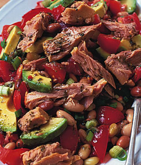 Chlebové placky nasucho opečte, třeba v toustovači. Jakmile vychladnou, natrhejte je na větší kusy. Promíchejte fazole, avokádo, rajčata, cibulky a chilli papričku. Tuňáka rozdělte na vločky, posypte jím salát a zakápněte ho zálivkou. Lehce promíchejte a podávejte. Křupavé placky jednoduše přikusujte nebo nalámejte a přimíchejte k salátu.