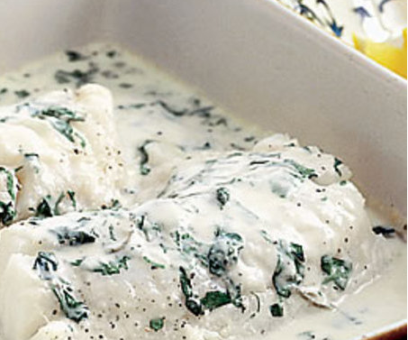 Filety naklaďte vedle sebe do nádoby vhodné do mikrovlnné trouby. (Zmražené nechte napřed ohřát na pokojovou teplotu a osušte.) Osolte a opepřete. Petrželku v jiné míse smíchejte se smetanou, křenem a solí. Smetanu rozdělte lžící na maso; není třeba ji roztírat. Nádobu pokryjte fólií a tu na několika místech propíchněte. V mikrovlnné troubě vařte na nejvyšší stupeň čtyři až pět minut, dokud ryba nezbělá. Mísu vyjměte z mikrovlnné trouby a – stále pod fólií – nechte dvě až tři minuty stát. Pak fólii odstraňte; rybu podávejte okamžitě. Podle chuti pokapejte citronem. Ideální přílohou jsou vařené brambory.