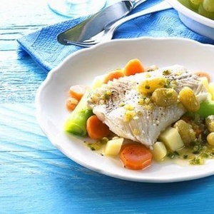 Zeleninu lehce osolíme a osladíme a necháme chvíli pracovat. Česnek očistíme a rozdrtíme. Mrkev a cibuli osmažíme na 2 lžících oleje, pak přidáme cuketu, fenykl a bylinky, zalijeme balzamikem a dáme do trouby. Filety omyjeme, osušíme, potřeme česnekem posolíme a popepříme a zprudka osmažíme na zbytku oleje a na másle. Přidáme k zelenině a dopečeme v troubě. Ihned podáváme.